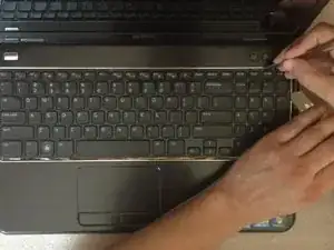 С помощью лезвия аккуратно приподнимите одну сторону клавиатуры и начните отщелкивать защёлки.