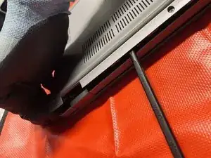 Поместите ноутбук вверх дном на мягкую, чистую поверхность, чтобы избежать царапин