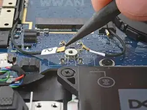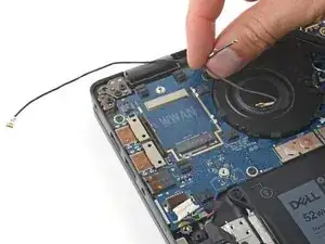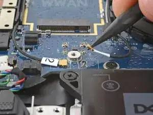 В этом руководстве показано, как отключить антенные кабели от дочерней платы в ноутбуке Dell Latitude 7410.