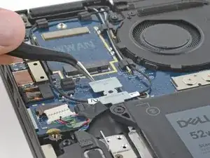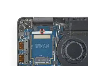 С помощью отвертки Phillips отвинтите винт 3 мм, удерживающий крепление кабеля WWAN.