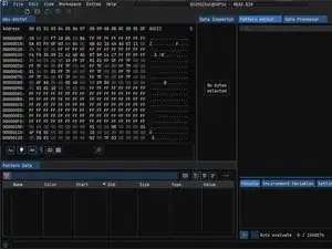 Запустите редактор ImHex (или любой другой шестнадцатеричный редактор) и откройте первый бинарный файл, прочитанный с чипа на предыдущем шаге.