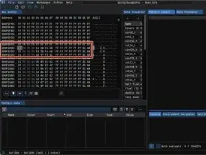 Перейдите непосредственно к адресу "0x000F1000" с помощью функции перехода в меню "file". Вы должны увидеть шаблон поиска "010000" на второй строке, как в приведённом скриншоте.