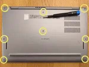 Снимите 8 винтов 7 мм, удерживающих нижнюю крышку, крестовой отвёрткой Phillips #1.