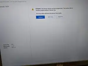 Поскольку мы стерли область EC на чипе, BIOS не знает, какая это машина, и попросит заново ввести сервисный тег, связанный с устройством.