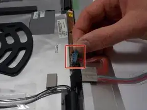Потяните за синюю бирку внизу экрана и отключите кабель.