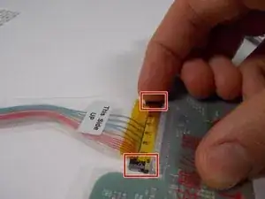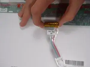 С обратной стороны, в верхней части экрана, отсоедините кабель с маркировкой «this side up».