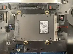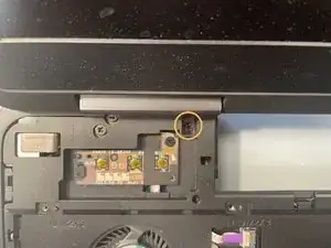 Удалите четыре серебристых винта крестовой отверткой Phillips PH0, сдвиньте клавиатуру вверх на несколько миллиметров, затем отведите её от себя, чтобы обнажить шлейф