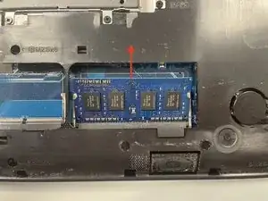 Извлеките модуль оперативной памяти, слегка раздвинув металлические защёлки наружу