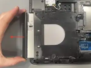 Используйте пластиковую лопатку, чтобы выдвинуть оптический привод, затем достаньте его вручную