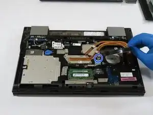 Рекомендуется ознакомиться с сопутствующим руководством, в котором описан демонтаж вентилятора в Dell Latitude E6510.