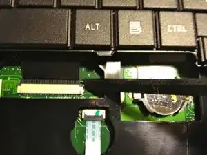 Используйте наконечник или плоский конец нейлоновой лопатки, чтобы разблокировать разъём, фиксирующий плоский кабель клавиатуры на логической плате.