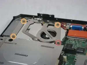 Открутите следующие винты от кронштейна крепления вентилятора: