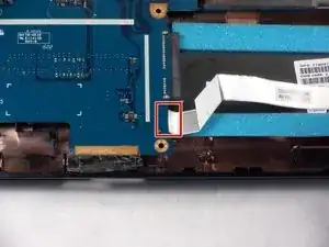 Отключите маленький разъём с нижней стороны материнской платы.
