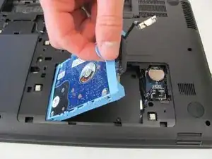 Схватите синию бирку на правой стороне жёсткого диска пальцами и медленно тяните вверх.