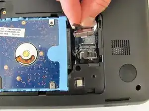 Используя лопатку, отсоедините кабель подключения жёсткого диска. Делайте медленное поддевание, как при вынимании гвоздя из дерева.