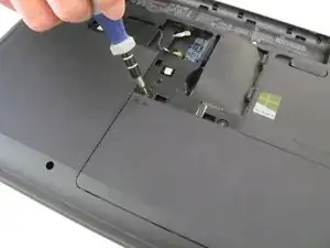 Ослабьте винт Phillips #00, фиксирующий крышку отсека оперативной памяти.