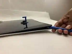 Медленно пройдитесь вокруг кромки инструментом для вскрытия. Шумы, которые вы услышите, вызваны отщёлкиванием небольших защёлок. Продолжайте до тех пор, пока не обойдёте весь ноутбук.