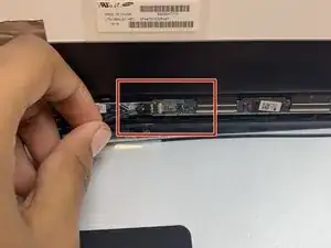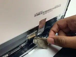 После отсоединения экрана от задней панели обратите внимание на заднюю сторону экрана — снимите ленту, фиксирующую экран к нижней панели.