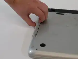 Выньте аккумулятор, установив переключатель с символом замка в положение «разблокировано» и сдвинув аккумулятор в сторону центра ноутбука.