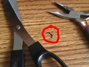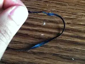 Сделайте тонкий кусочек изоленты, чтобы обернуть его вокруг открытой скобы (он может быть толще; этот кусок ленты остался от другой неудачной попытки исправления)