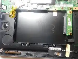 После открытия ноутбука жесткий диск находится внизу справа от места установки аккумулятора.
