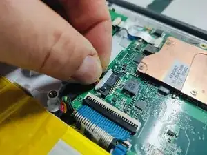 Осторожно отсоедините кабель, отмеченный на рисунке, вытянув его из разъёма.