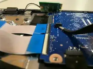 Батарея зафиксирована только куском антистатической ленты. С помощью пинцета аккуратно отодвиньте ленту с одного края.