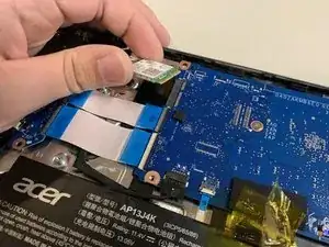 Снимите винт M.2 и отключите Wi‑Fi‑карту от материнской платы.