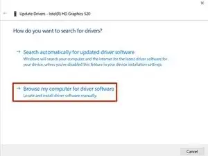 Вы должны увидеть окно, похожее на это. Нажмите на опцию "Указать место расположения драйвера на моем компьютере".