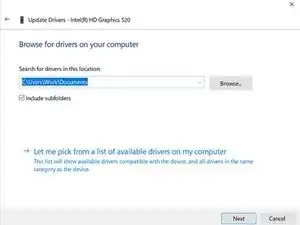 Следующий шаг будет выглядеть так. Нажмите на опцию внизу, которая говорит "Позвольте мне выбрать из списка доступных драйверов на моем компьютере".