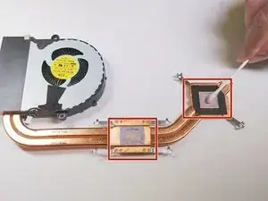 Смочите ватную палочку изопропиловым спиртом и удалите термопасту с тепловых пластин компонента круговыми движениями без усилия.