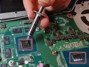 Повторите тот же процесс очистки, описанный в предыдущем шаге, для соответствующих тепловых пластин на материнской плате.
