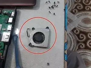 Открутите винты, указанные красным, чтобы снять вентилятор.