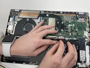 Снимите нижнюю крышку с ноутбука.