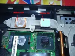 Нанесите новый термоклей на процессор и новую термопрокладку на графический процессор. Готовьтесь к установке радиатора на место!