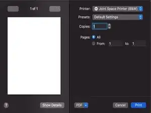 Откройте документ, который хотите распечатать, нажмите Печать, выберите Назначение и соответствующий принтер для печати.