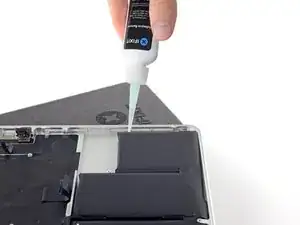 Подождите 2–3 минуты, чтобы жидкий растворитель проник и размягчил клей, прежде чем переходить к следующему шагу.