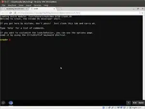 Нажмите [ Ctrl ] [ Alt ] [ T ], чтобы попасть в оболочку crosh на Chromebook (см. первое изображение). Примечание: первые три снимка оболочки сделаны в CloudReady — имитации ChromeOS, а не на реальном Chromebook, но для наших целей они идентичны.