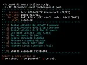 cd; curl -LO https://mrchromebox.tech/firmware-util.sh && sudo bash firmware-util.sh