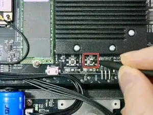 Используйте лопатку или палец, чтобы нажать на кнопку LPCRST рядом с DIP-переключателем из предыдущего шага.