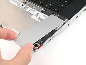 Поднимите распорку тачпада с ноутбука и удалите её.