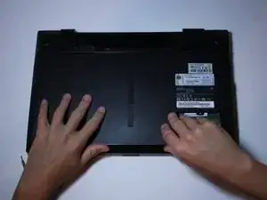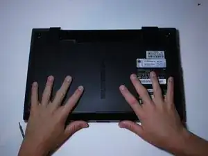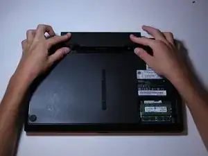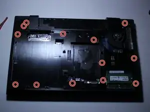 Для сборки устройства выполните эти действия в обратном порядке. Чтобы пластиковый корпус снова защёлкнулся поверх задней части материнской платы, может потребоваться время. Начните с одной стороны ноутбука и продвигайтесь к другой.