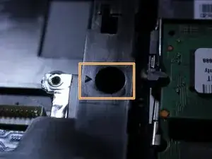 Используя крестовую отвертку Phillips #00, выкрутите винт 6,5 мм, расположенный рядом с надписью "ODD", как показано на фото.