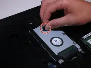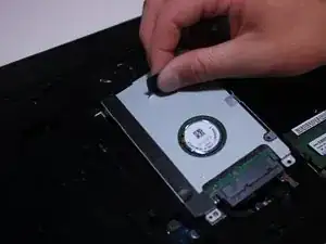 Держа за чёрную пластиковую вкладку, потяните вверх и вправо, чтобы извлечь жёсткий диск.