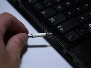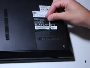 Используя крестовую отвертку Phillips #00, снимите винт 4,5 мм на панели, расположенной в нижнем правом углу компьютера.
