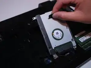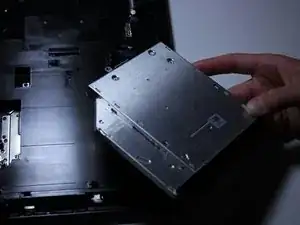 Используя руки (возможно, обе), тяните наружу, чтобы медленно извлечь оптический привод из корпуса.