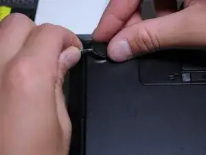 Отожмите пластиковые защёлки возле отверстия под винт с помощью пластикового лопатки для вскрытия.