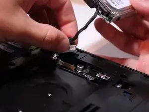 Осторожно, не повредите кабель, прикреплённый к жёсткому диску.