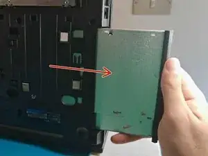 Теперь сдвиньте DVD-привод в сторону, пока он не снимется