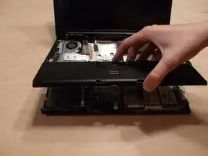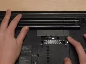 Оттолкните батарею от себя, вытащив её из задней части ноутбука.